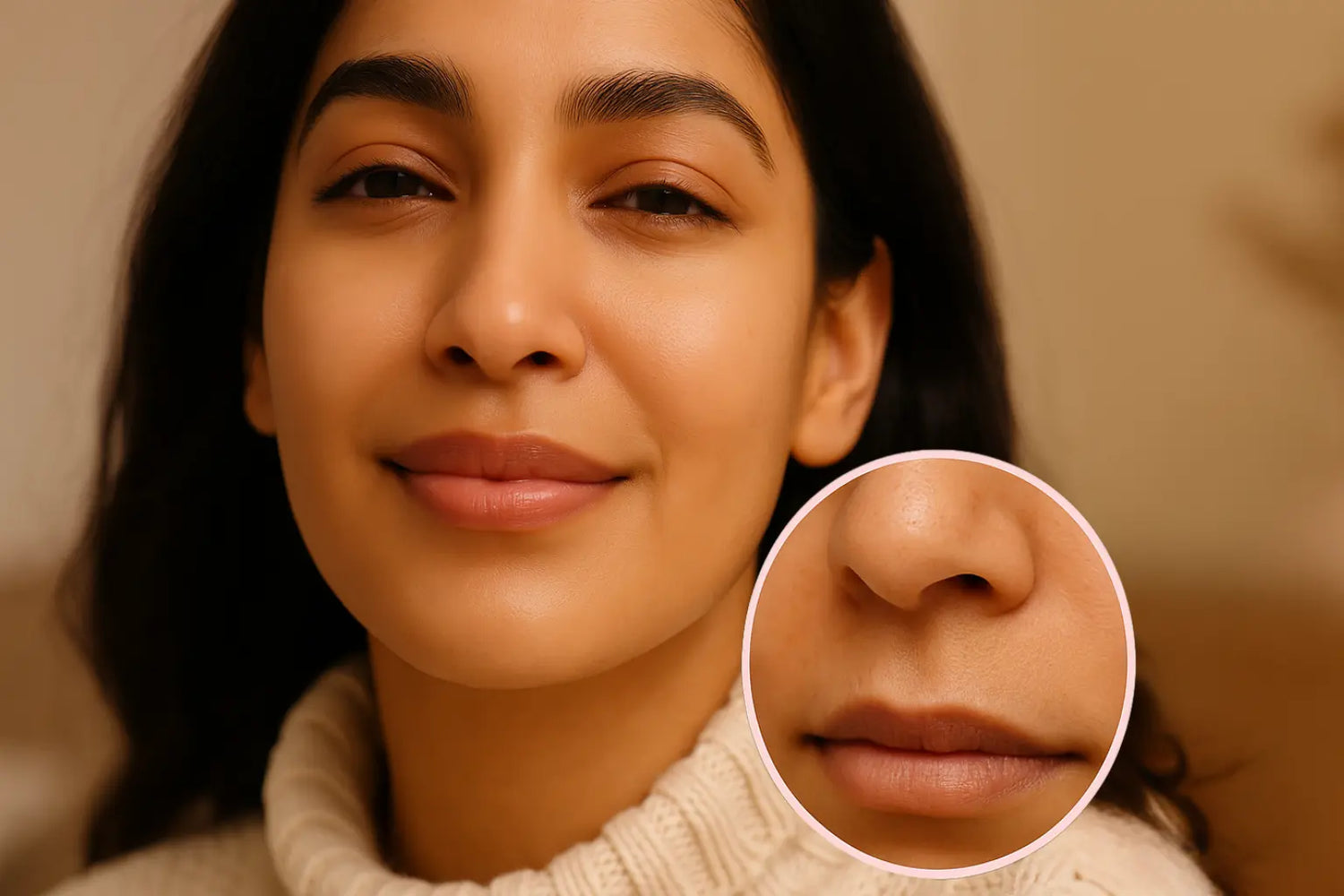 Cold weather and dry indoor air often cause tight, flaky skin around the nose and mouth.